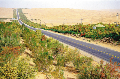 ■防護林體系建設工程保障了沙漠公路的暢通