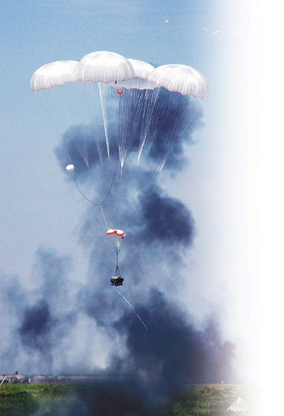 2002年6月,在黃河灘頭,中國空降兵首次將十幾噸的重裝備成功空投。