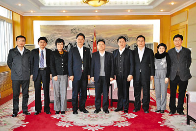■國新辦副主任王仲偉(中)會見香港文匯報董事長、社長王樹成(左四)等一行。香港文匯報記者程雲斌 攝