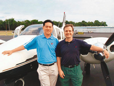 ■陳瑋(左)有許多飛機愛好者朋友。 網上圖片