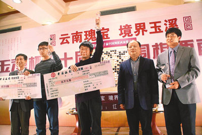 香港文匯報訊(記者 羅斯 成都報道)11日下午,「玉溪盃」第十屆中國圍棋西南棋王賽決賽展開廝殺,此前2天時間一路連挑孫力、余平、時越3員頂級棋手於馬下的棋壇小將古靈益在決賽中遭遇黨毅飛。經2個小時鏖戰,古靈益在並不佔優的形勢下突然沉穩下來,最終執黑235手中盤勝出,成功第四次蟬聯「西南王」。至此,由紅塔集團「玉溪」品牌獨家冠名的這一中國西南地區頂級圍棋賽事圓滿落下帷幕。