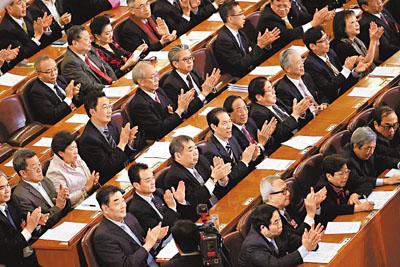 ■委員們鼓掌通過提案審查情況的報告。新華社