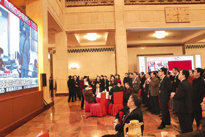 香港文匯報訊(兩會記者組 林舒婕、周逸 北京報道)13日上午全國政協十一屆四次會議閉幕前,委員們不像以往寒暄交流,而是紛紛駐足在人民大會堂的大屏幕前,收看央視早間新聞對日本地震災情的最新報道。