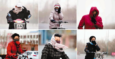 ■內蒙古中西部遭遇大風揚沙天氣,居民冒著風沙出行。 新華社