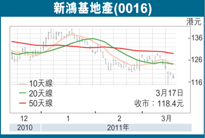 高盛在剛發表的研究報告中指出,今後幾個月即將有多個新盤推出,預計未來地產銷售將維持強勁,該行維持其買進評級,目標價166.80元,即較現價有約4成的上升空間。趁大調整市收集,料中線應有力再試年高位的144.2元。
