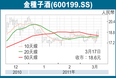 據金種子酒(600199.SS)財務部門初步測算,預計公司2011年第一季度歸屬於母公司所有者的淨利潤同比增長150%以上。我們依然認為公司如果出現回調是好的買入機會,是金子總是會發光的。