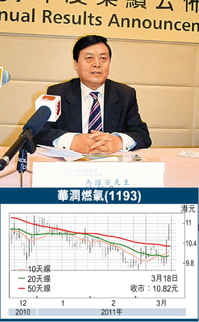 華潤燃氣(1193)公佈2010年盈利按年升74%至7.34億元,每股盈利按年升54%至0.51元。業績較市場預期高5%。末期息為每股0.08元。
