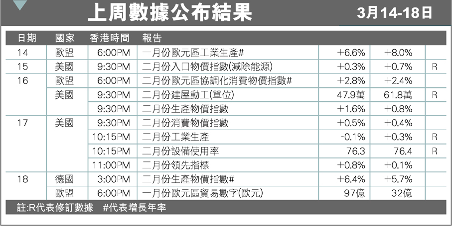 上周數據公布結果(3月14-18日) (2011-03-21) (圖)