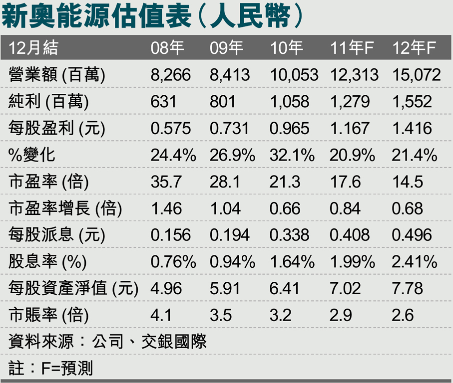 新奧能源估值表(人民幣) (2011-03-22) (圖)