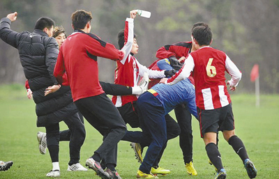 ¡@Âù¤è²yû¨³³t³òÃl¦b¤@°_¡A¸s¼ÞÀH¤§Ãzµo¡C¬ðµM¡A¤t¨¬ªº¤@¦W·s涤û½ÄµÛ¦¨¨¬¶¤û¤ý¼Ý´N¬O¤@¤Ú´x¡FÀH«á¡A³o¦W·s涤û¤´µM¤£¨Ì¤£ÄÇ¡AÁٸչϰlµÛ¦¨¨¬¶¤û¥´¡A´Nºâ³Q±Ð½m©Ô¦í¡A¥L¨ÌµM¨g¥s¡G¡u§Ú¬O¨k¤H¡A§Ún¥´¬[¡K¡K¡vªººÆ¸Ü¡C½Ä¬ðµo¥Í¤F¤j¬ù10¤ÀÄÁ¡AÂù¤èÁ`¦@¦³20¦h¦W²yû°Ñ»P¤F¥´°«¡A¤£¤Ö²yû¦]¦¹¨ü¶Ë¡F¨ä¤¤¡A¨ü¶Ë³ÌÄY«ªº·íÄݱiêM¡A¥L³Q¥´±oÀY¯}¦å¬y¡C