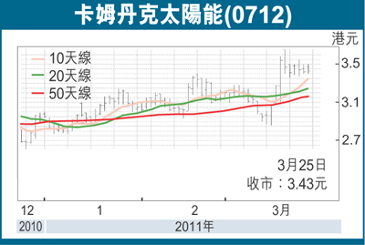 卡姆丹克太陽能(0712)2010年盈利按年升795%至2.23億元人民幣,每股盈利按年升550%至0.21元人民幣。業績與市場預期相符。