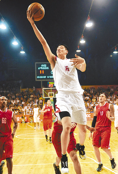 ■賀天舉(白衫)角逐「潞安盃」籃球邀請賽。 資料圖片