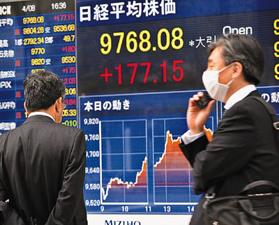 ■日本震災後,日股上月中一度暴瀉,其後大幅反彈,上周五升1.85%,報9768點。 資料圖片