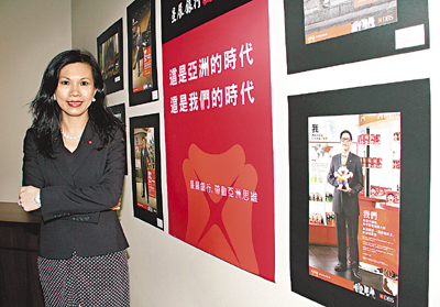 香港文匯報訊(記者 邱婷)08年金融海嘯打擊多國經濟,銀行業形象同遭重創,如今亞洲區經濟帶頭復甦,成為金融業未來增長點,本港銀行為搶佔先機,趁勢加強品牌包裝。星展銀行今年耗資1.8億元於亞洲6個主要市場做品牌推廣,其中約四成(即7,200萬元)投入於大中華市場,更邀請企業客戶協助拍攝廣告,構建亞洲首選銀行形象。