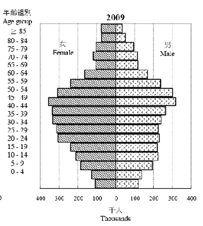 模擬試題:資料A 本港人口金字塔(2009年) (2011-04-12) (圖)
