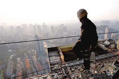 ■內地二、三線城市樓價有直逼一線大都會的趨勢。圖為在安微省會合肥工人正建造新樓盤。 法新社