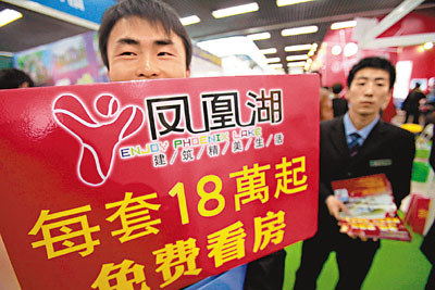 ■在前日北京房地產展銷會上,商家以極低廉價格促銷樓盤。 法新社