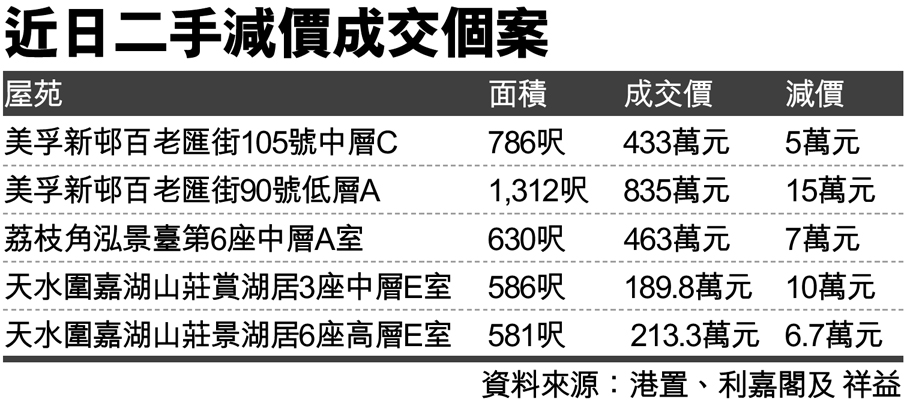 近日二手減價成交個案 (圖)