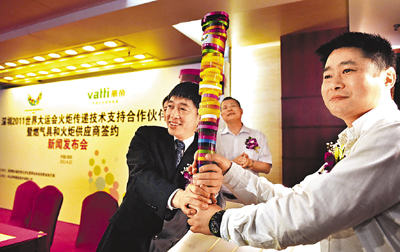 據新華社22日電 第26屆世界大學生夏季運動會火炬傳遞活動即將開始。22日在此間召開的新聞發佈會上,深圳大運會組委會執行局表示,中山華帝燃具股份有限公司已被正式確定為火炬供應商,該公司將負責製造約2300支「虹」火炬及周邊器材。深圳大運會火炬傳遞將於5月4日在北京大學拉開帷幕。本屆大運會火炬取名為「虹」,色彩豐富和造型百變是其突出特點。