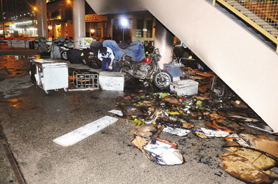 ■沙田翠華花園對開行人天橋底一書報攤遭縱火焚毀。