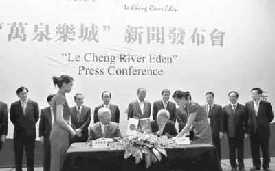■「中日合作萬泉樂城太陽與水示範區項目」發佈會及簽字儀式。 香港文匯報記者何玫 攝
