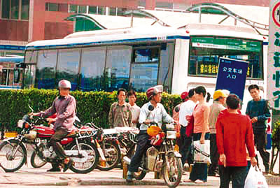 ■一些非法摩托車運營者圍在廣州客運站門口。網上圖片