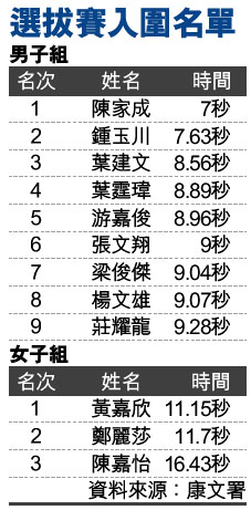 選拔賽入圍名單 (圖)