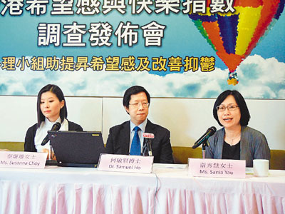 香港大學心理學系副教授何敏賢稱,中年人的快樂度和希望度比少年和年長人士低,與外國的研究結果吻合,顯示中年人需要更多的關注,希望度愈低,患上抑鬱症的風險便愈大。