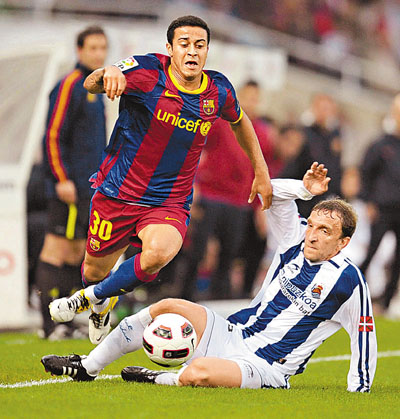 皇家馬德里(皇馬)和巴塞羅那(巴塞)最近被連續三場西班牙國家打比折騰得精疲力竭,30日在西甲聯賽中雙雙落敗。前者主場以2:3不敵薩拉戈薩,後者作客以1:2輸給了皇家蘇斯達(皇蘇)。