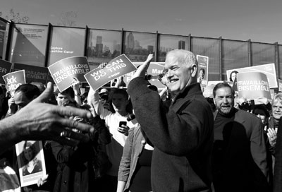 ■新民主黨黨魁林頓拉票時與支持者握手。 路透社
