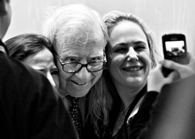 ■巴菲特的人緣甚佳,在股東大會上被女粉絲包圍影相。 路透社