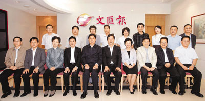 ■貴州省委書記栗戰書一行訪問香港文匯報,與王樹成等高層合照留念。 香港文匯報記者潘達文 攝