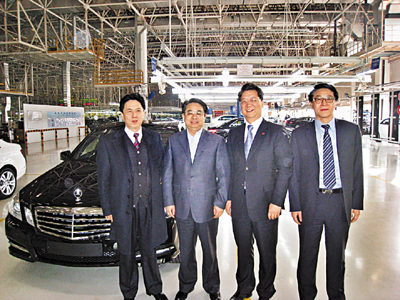香港文匯報訊(記者 李茜婷、羅洪嘯 北京報道)日前,香港文匯報董事長、社長王樹成一行實地考察了北京奔馳汽車有限公司,北汽集團副總、北京奔馳公司高級執行副總裁蔡速平在向王樹成社長介紹情況時表示,2010年北京奔馳業績取得重大突破,銷售量超5萬輛,比2006年增長8.1倍。到「十二五」末,北京奔馳將年產整車35萬輛、發動機50萬台,利潤將超過100億元,相當於再建一個新首鋼,或將成為中國第一個走向世界的高端品牌汽車。