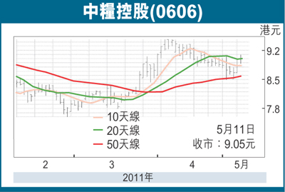 ¡@»P¤j¦¨¥Í¤Æ¦PÄݹª«¶¼«~ªO¶ôªº¤¤Â³±±ªÑ(0606)¡A¦b¬Q¤é¤ÏÂЪi°Êªº¥«ªp¤U¤´¨£«ùÄòºû«ù¤£«Uªº¤É¶Õ¡A³Ì«á¥H9.05¤¸³ø¦¬¡A¤É0.23¤¸©Î2.61%¡A¦¨¥æ¼W¦Ü1.07»õ¤¸¡A¦Ó¦¬¥«»ù¥ç¥ø©ó¦h±ø«n¥§¡½u¡A¨ä§Þ³N¨«¶Õ¦V¦n¡A®Æ±N¦³§Q¤Ï¼u¤§¶Õ©µÄò¡C