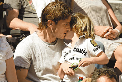■羅馬「王子」托迪與家人到場觀賞羅馬網球大師賽期間,當眾親吻兒子,展顯溫情。 路透社