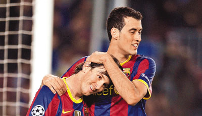 ■巴塞大將美斯(左)和布斯基斯(右)。 美聯社