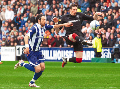 ■格拉斯哥流浪(圖黑衫)昨晚在蘇超煞科戰.客場以5:1擊敗基爾馬諾克,成功奪標。荷甲煞科冠軍爭奪戰,阿積士主場3:1挫川迪,成功反超對手稱霸。 路透社
