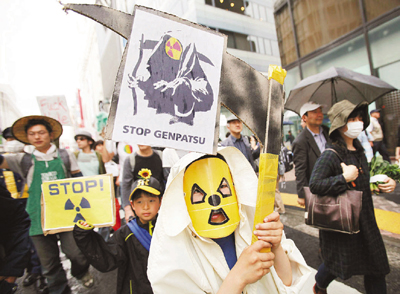 ■日本核事故引起全球對核能發展的反思。圖為東京示威者舉行反核能遊行。 資料圖片