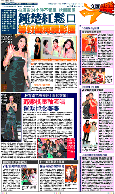 香港文匯報訊(記者 李思穎)養尊處優的鍾楚紅近日為美容產品拍攝電視廣告,依然狀態大勇,不過紅姑對復出大銀幕拍戲便一切隨緣,至於感情生活,紅姑表示沒有追求者,不是容易遇得上。