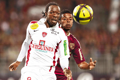 ■歐聯常客里昂昨晨法甲賽和比斯特(白衣)1:1,多踢1場下在積分榜第3位只餘2分優勢,失去爭入歐聯外圍賽的主動權,比軍則比降班區邊緣多2分。