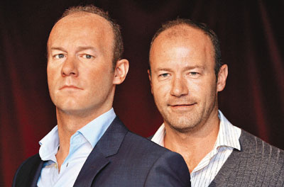 ■英格蘭前足球名將舒拿(右),日前在倫敦一間蠟像館跟自己的蠟像合照。 法新社