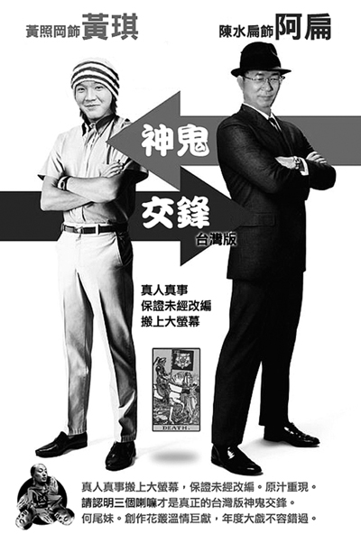 ■黃琪曾冒占卜師的身份騙倒陳水扁,聞名島內,情節十足電影《捉智雙雄》(台譯:神鬼交鋒),當時有網民惡搞電影海報。 網上圖片