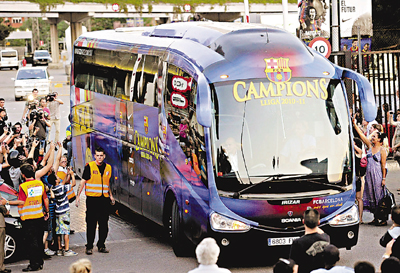 ■巴塞球員由西班牙出發。 法新社