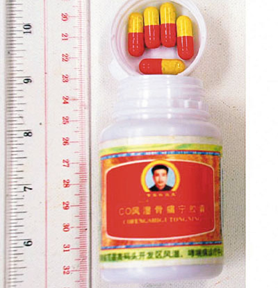 香港文匯報訊 衛生署昨日呼籲市民應小心服用一種名為「CO風濕骨痛寧膠囊」(見圖)的產品。該署跟進醫院管理局呈報一名67歲女病人於本月20日入住明愛醫院的個案,發現她腎上腺功能不足、腎功能受損,亦出現庫欣氏症候群的病徵。調查顯示,該名女病人於過去3至4年長期服用上述購自內地的產品,而出現在她身上的不良反應懷疑與服用該產品有關。