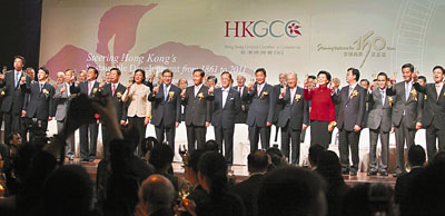 ■香港總商會昨晚假香港會議展覽中心,舉辦150周年慶祝晚宴。逾2,000位香港商界翹楚親臨。