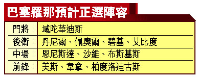 巴塞羅那預計正選陣容 (2011-05-28) (圖)