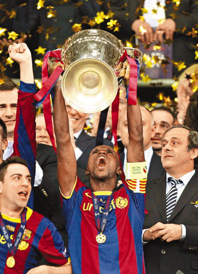 捧盃時刻,第一個高舉獎盃的不是隊長佩奧爾,也不是本場戴上隊長袖標的沙維。領獎台上,隊友們都把這一光榮時刻留給了31歲的法國人艾比度。此時,這位今年接受了肝腫瘤摘除手術的後衛已經戴上了隊長袖標。 ■綜合外電