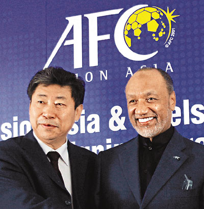 ■張吉龍(左)將暫代哈曼處理亞足協工作。路透社