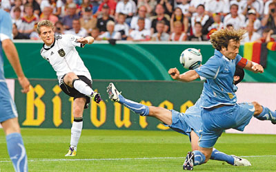 ■德國昨晨與到訪的烏拉圭踢友誼賽,為歐國盃外圍賽熱身,並為在高路斯缺陣下試新陣。結果,這場2010年南非世界盃3、4名之間的較量,仍以德國獲勝;高美斯和舒賀爾尼(圖左)的入球,幫助德國以2:1獲勝。另外德國U21將在明晨友賽葡萄牙U21,兩隊同樣在U21歐國盃分組賽出局。 (有線155台周三00:15a.m.直播)