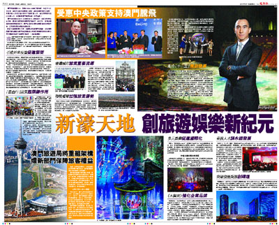 澳門旅遊業亦由昔日「以博彩為主」營運模式,過渡至現時結合休旅、購物及會展等新型娛樂營運模式,過去2年,被譽為開創亞洲娛樂事業新紀元、澳門首家綜合娛樂休閒度假城的新濠天地,正好體現這種嶄新旅遊業生態。